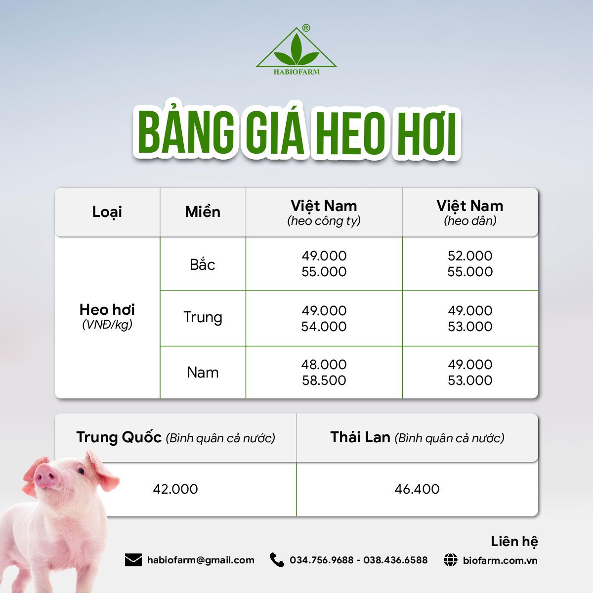 Giá heo tại Trung Quốc trung bình 42.000 đ/kg, trong khi Thái Lan đạt khoảng 46.400 đ/kg.