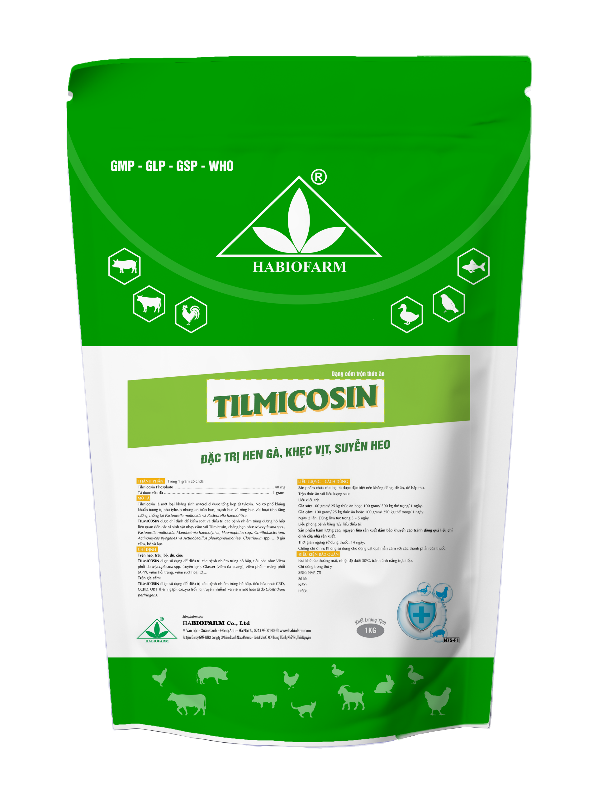 Thành phần Trong 1 gram có chứa: Tilmicosin Phosphate ………….…………..….. 100 mg Tá dược vừa đủ ……………………………..…. 1 gramChi tiết -