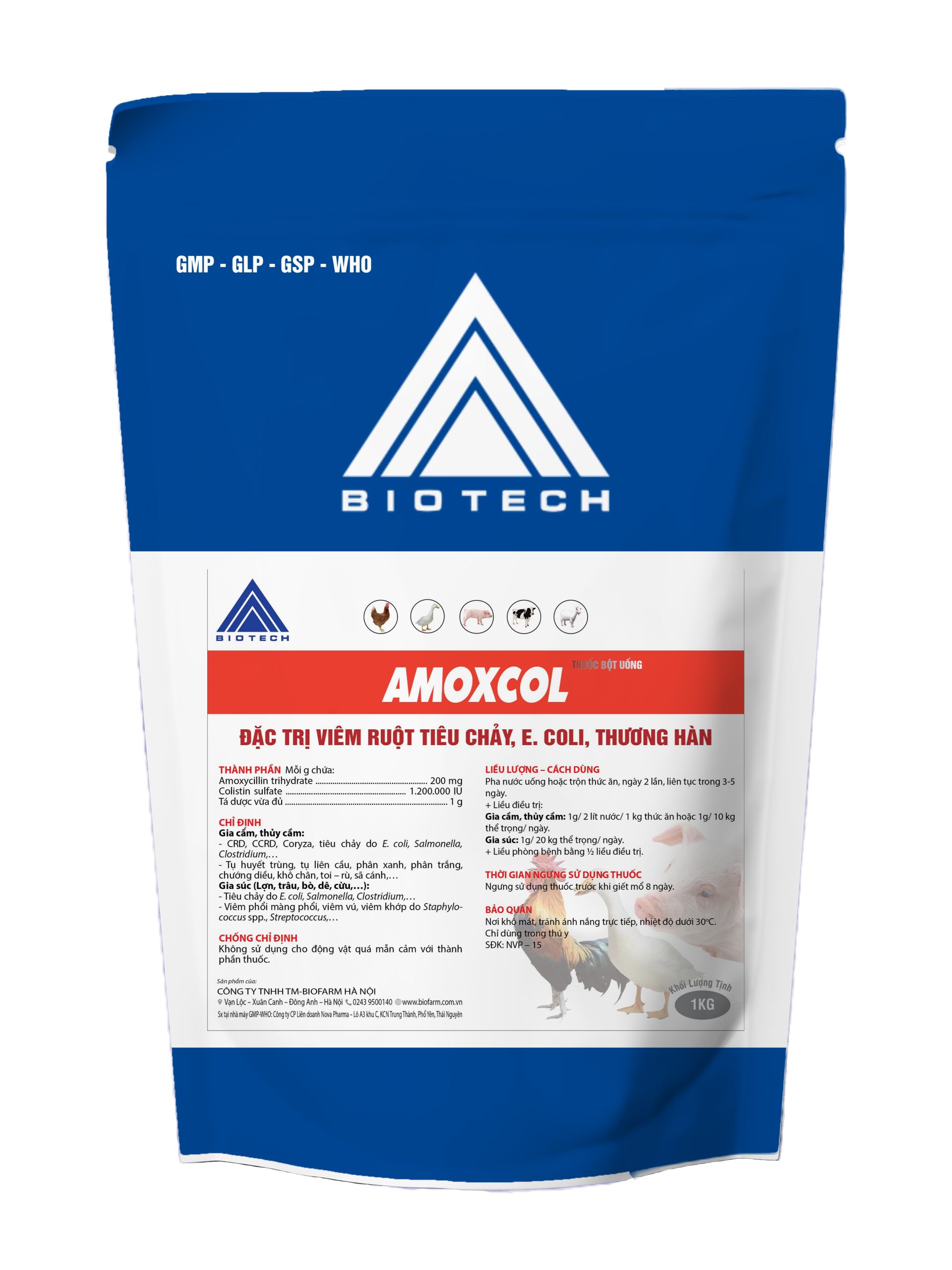 THÀNH PHẦN: Trong 1gr có chứa: Amoxycillin trihydrate …………….…….… 500 mg Colistin sulfate ……………………………… 2.000.000 IU Tá dược vừa đủ…………………………….. 1 grChi tiết -